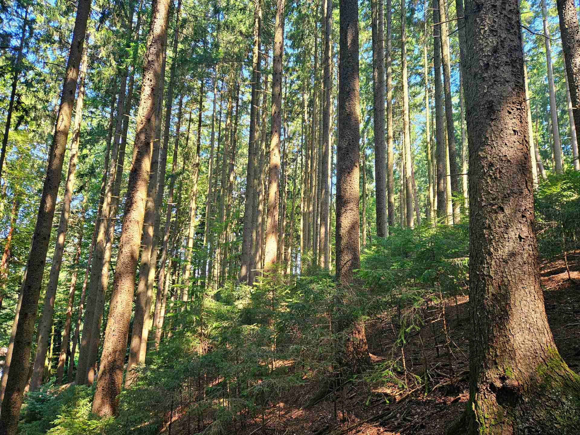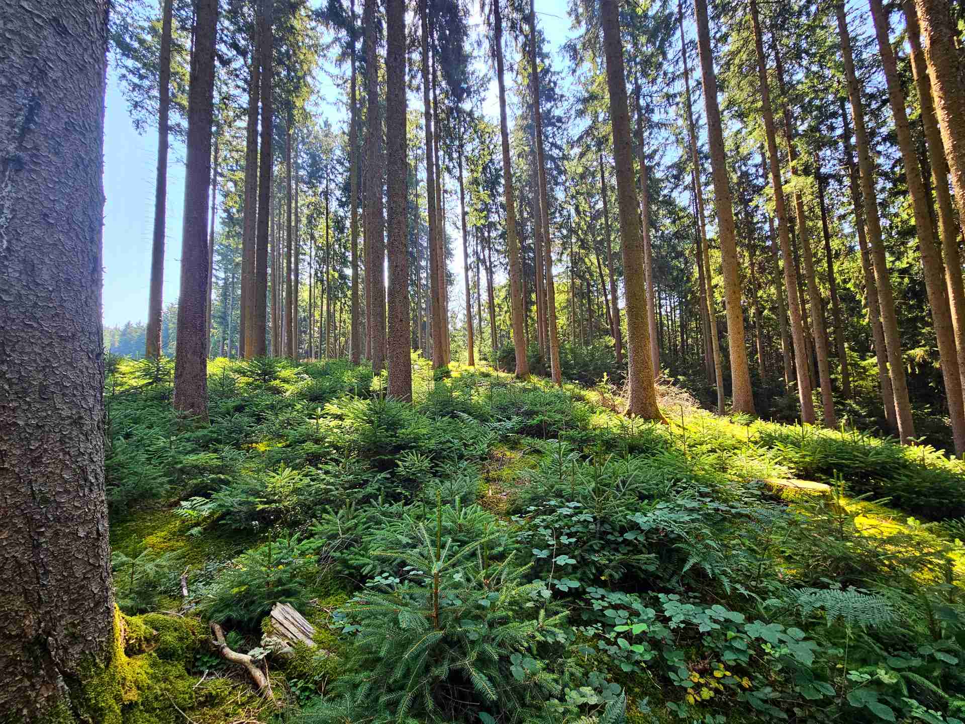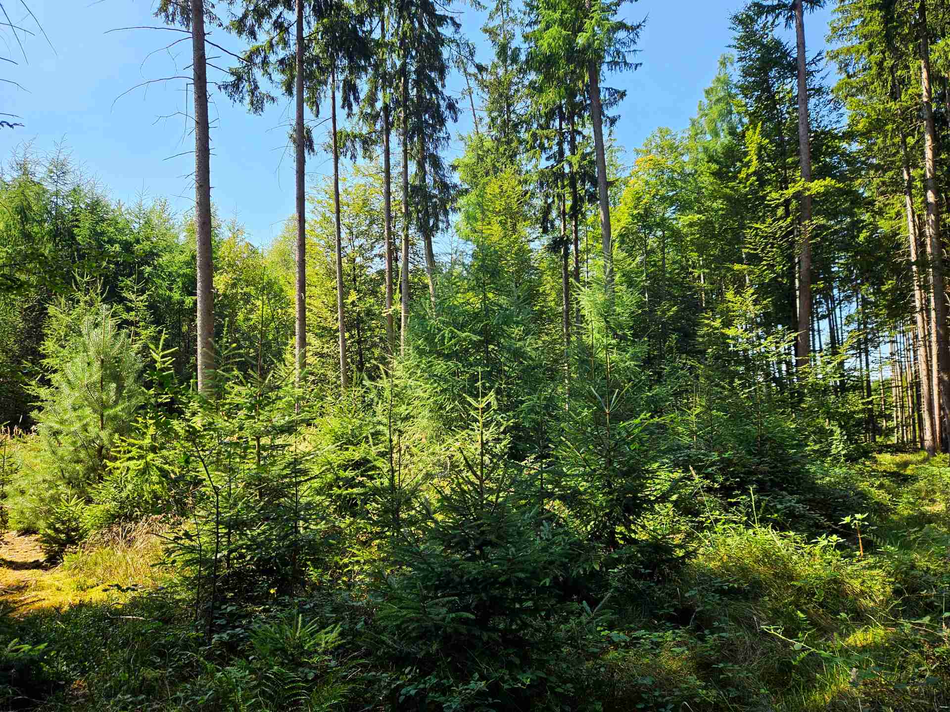 - Altbestände: Vorwiegend Fichte (80–100 Jahre), ergänzt durch Beimischung von Lärche, Douglasie und Buche.