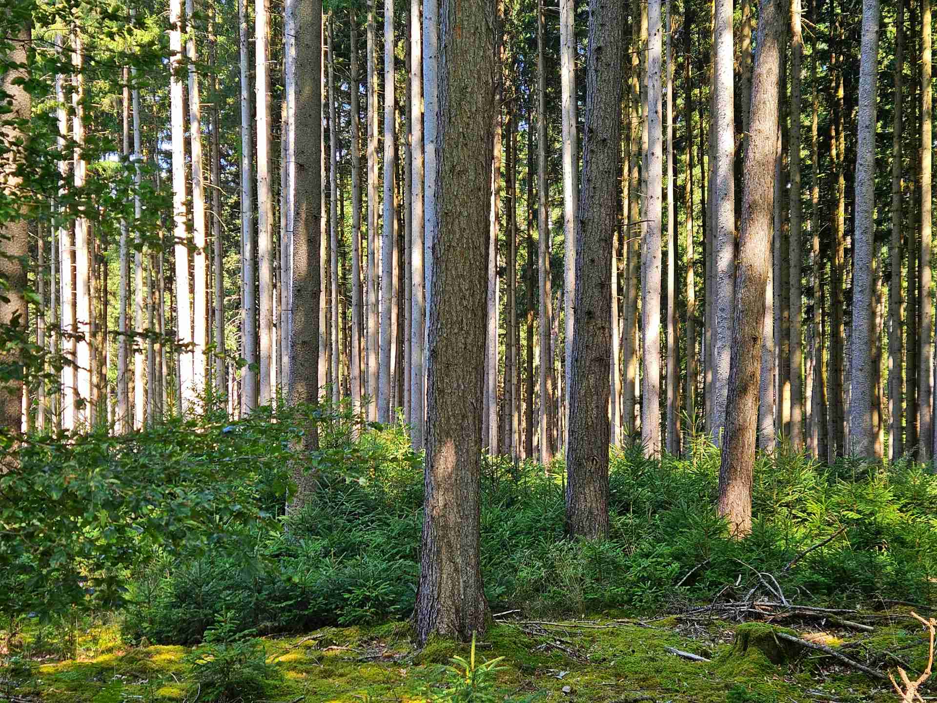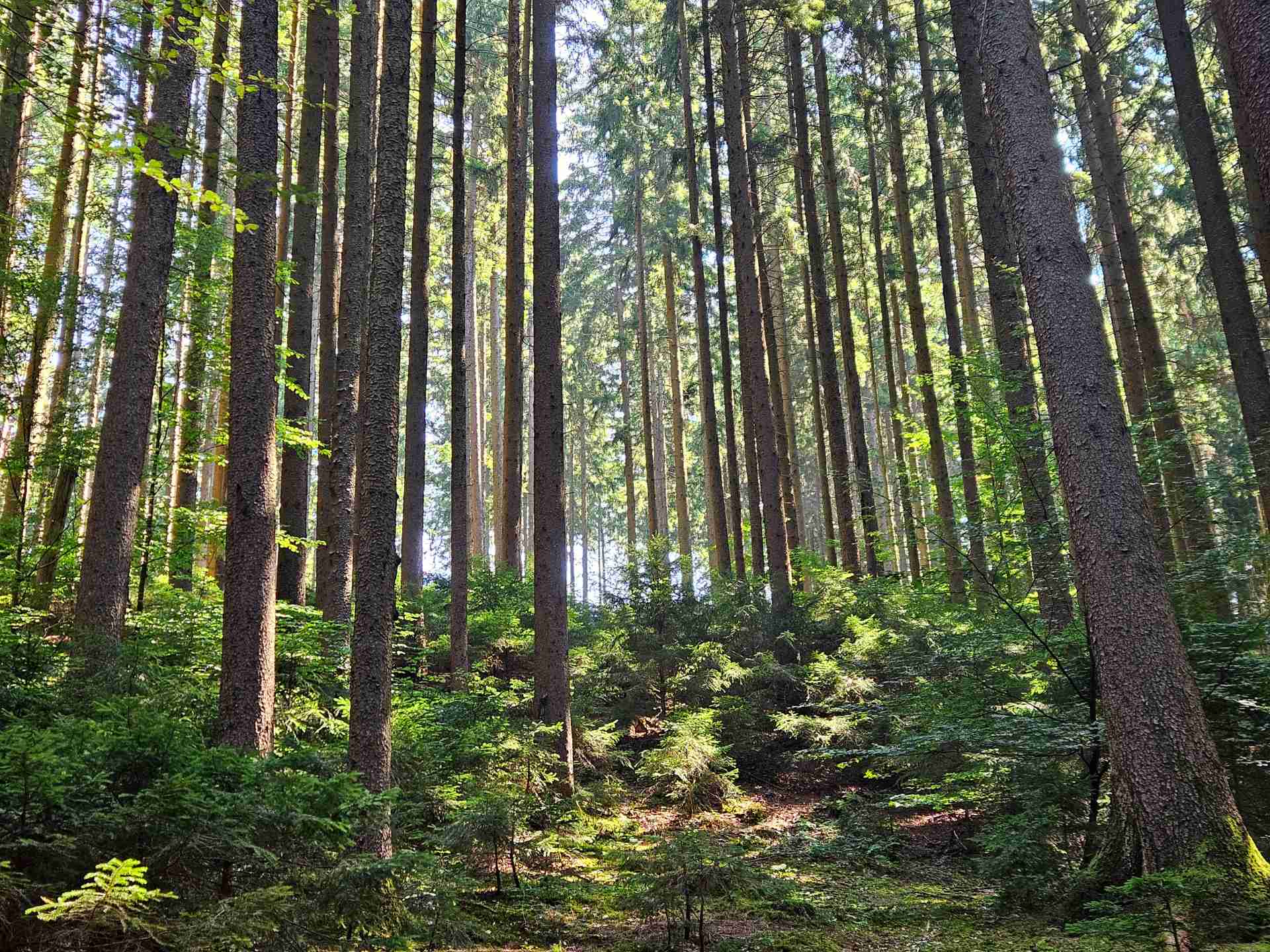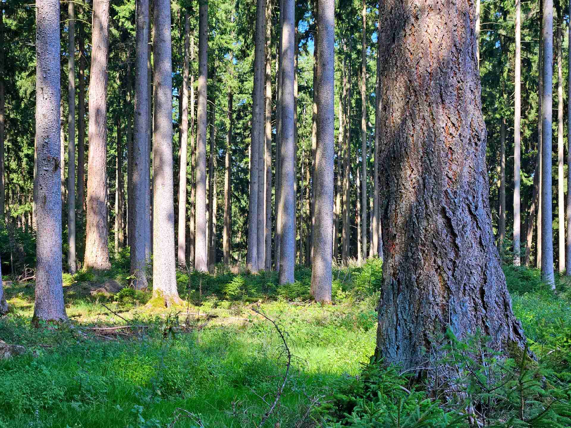 - Altbestände: Vorwiegend Fichte (80–100 Jahre), ergänzt durch Beimischung von Lärche, Douglasie und Buche.
