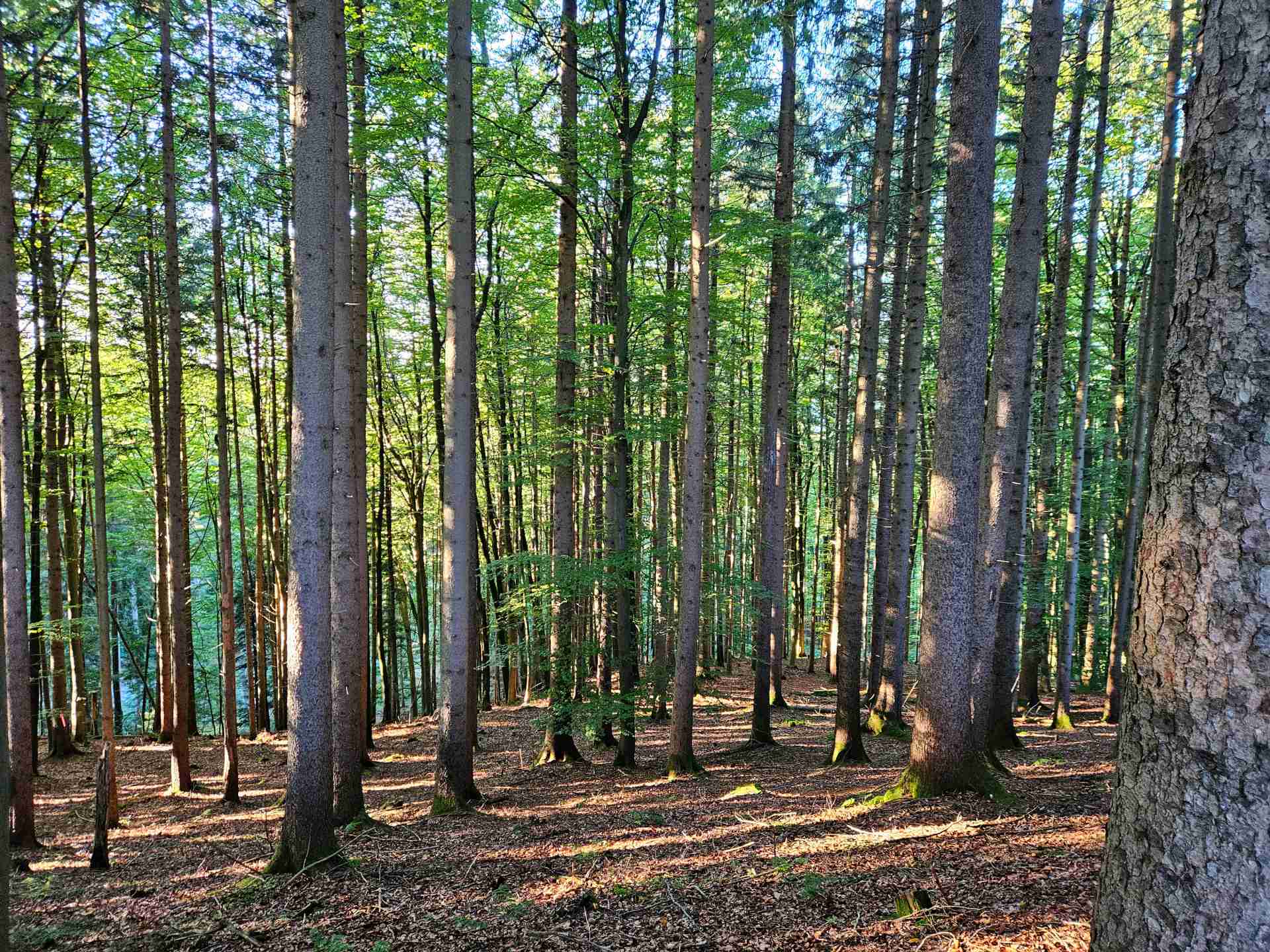 Nach Einschätzung vergleichbarer Standorte im oberbayerischen Alpenvorland liegt der Holzvorrat (konservativ angeschätzt) bei etwa 400 – 450 Festmetern je Hektar, entsprechend einem Gesamtvorrat von knapp 1.300 Festmetern. Der durchschnittliche jährliche Zuwachs beträgt ca. 10 Festmeter pro Hektar, womit die Fläche bei maßvoller Nutzung dauerhaft ertragsfähig ist.