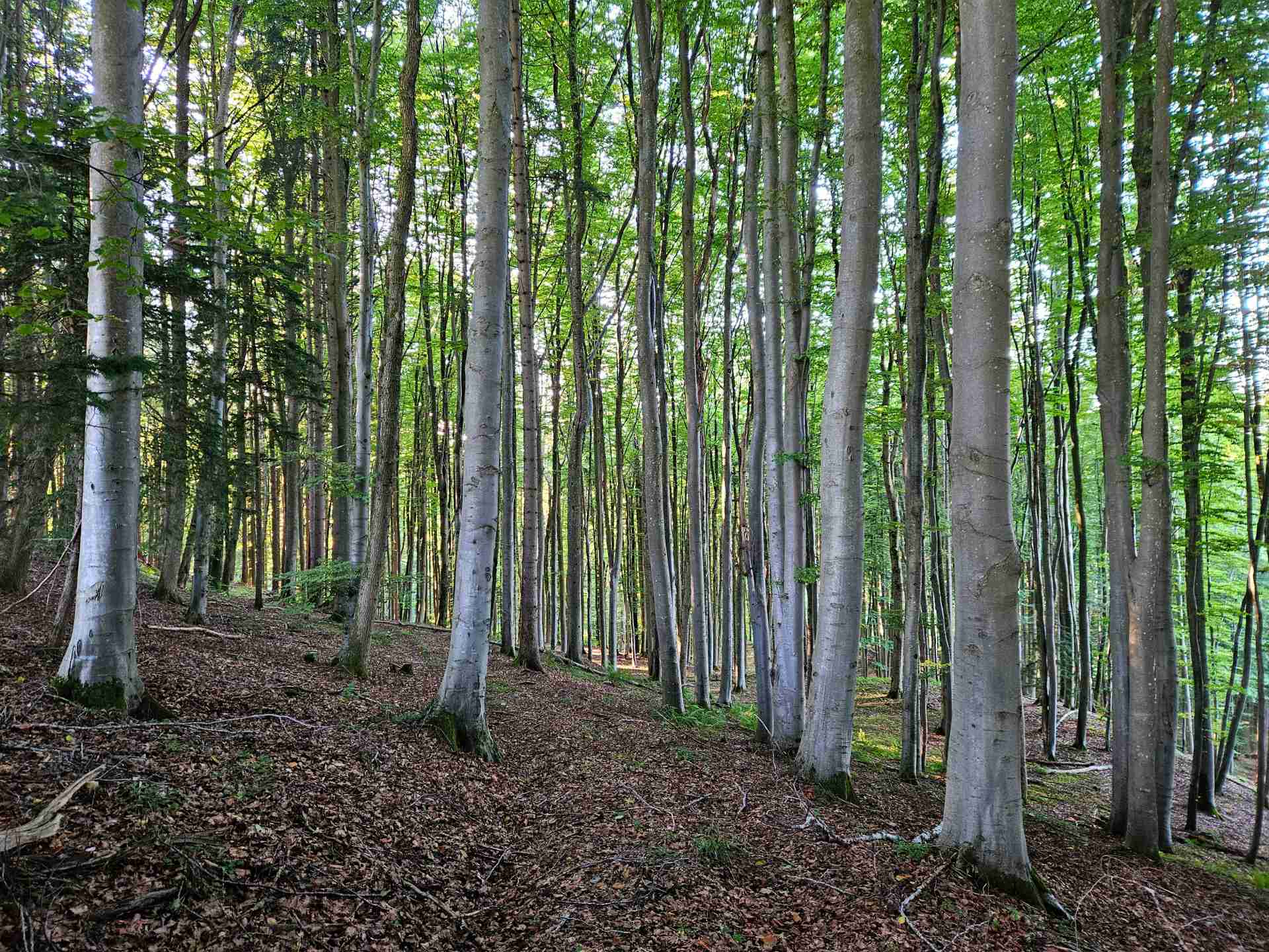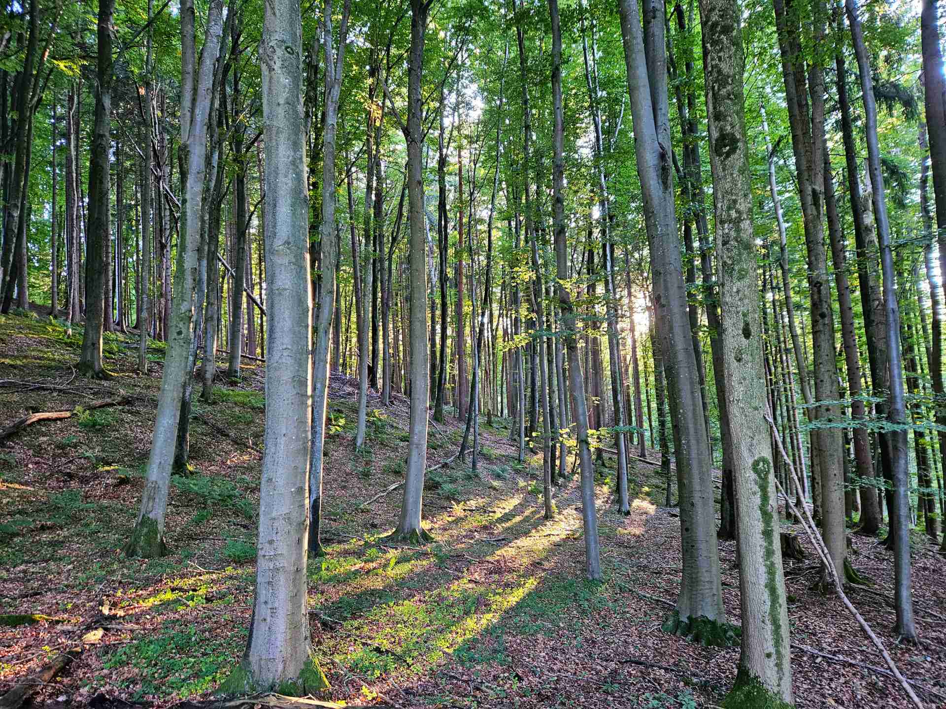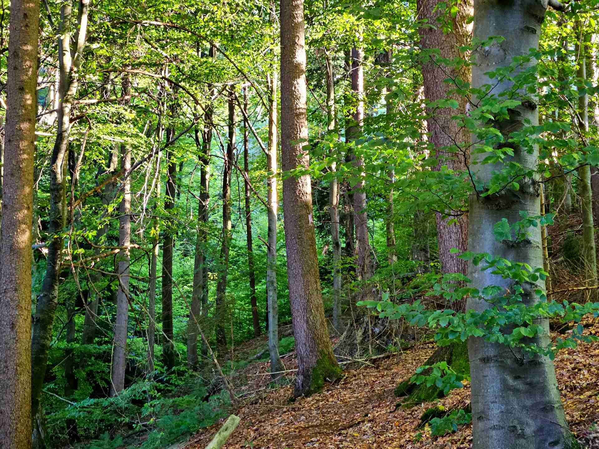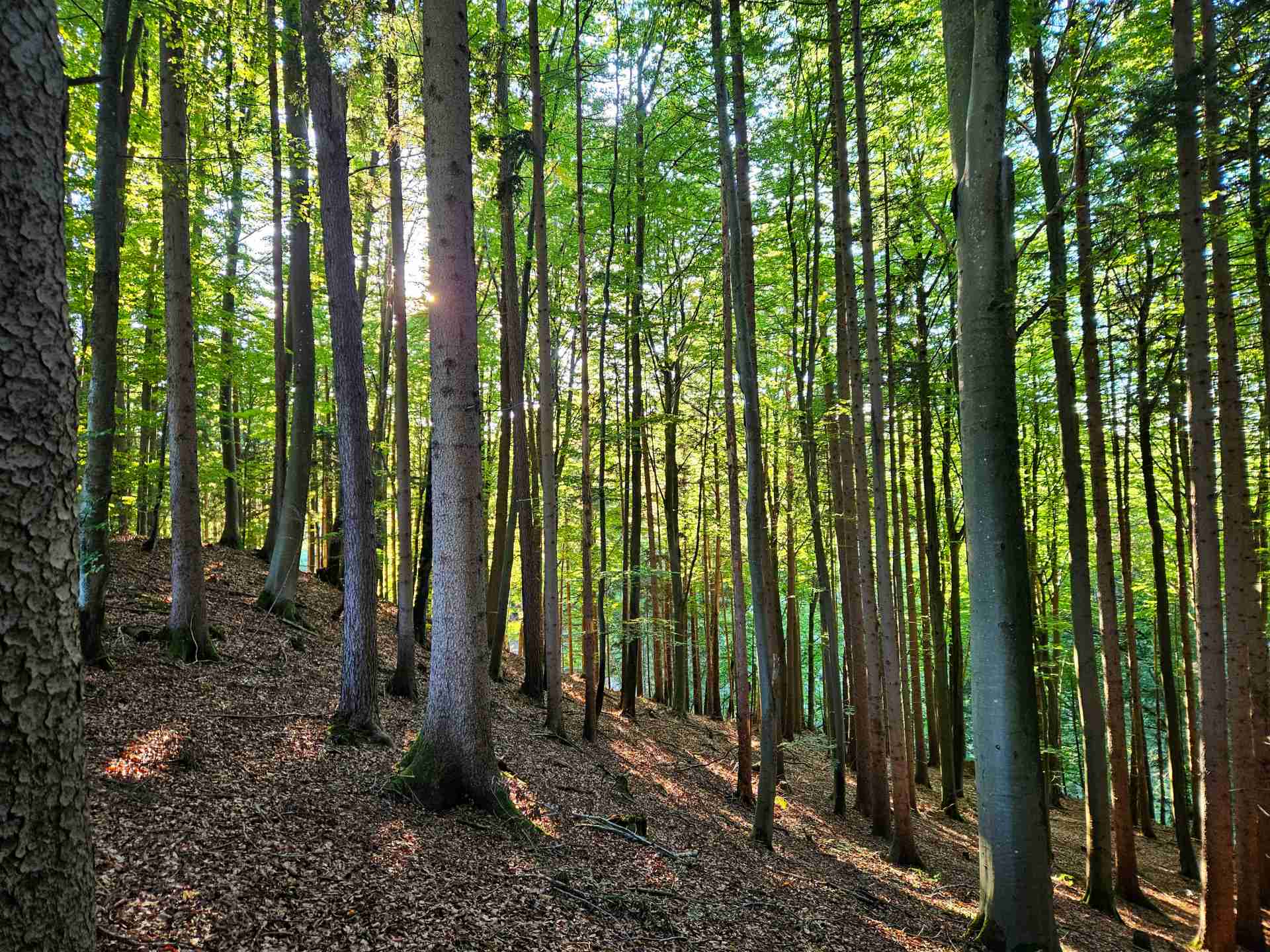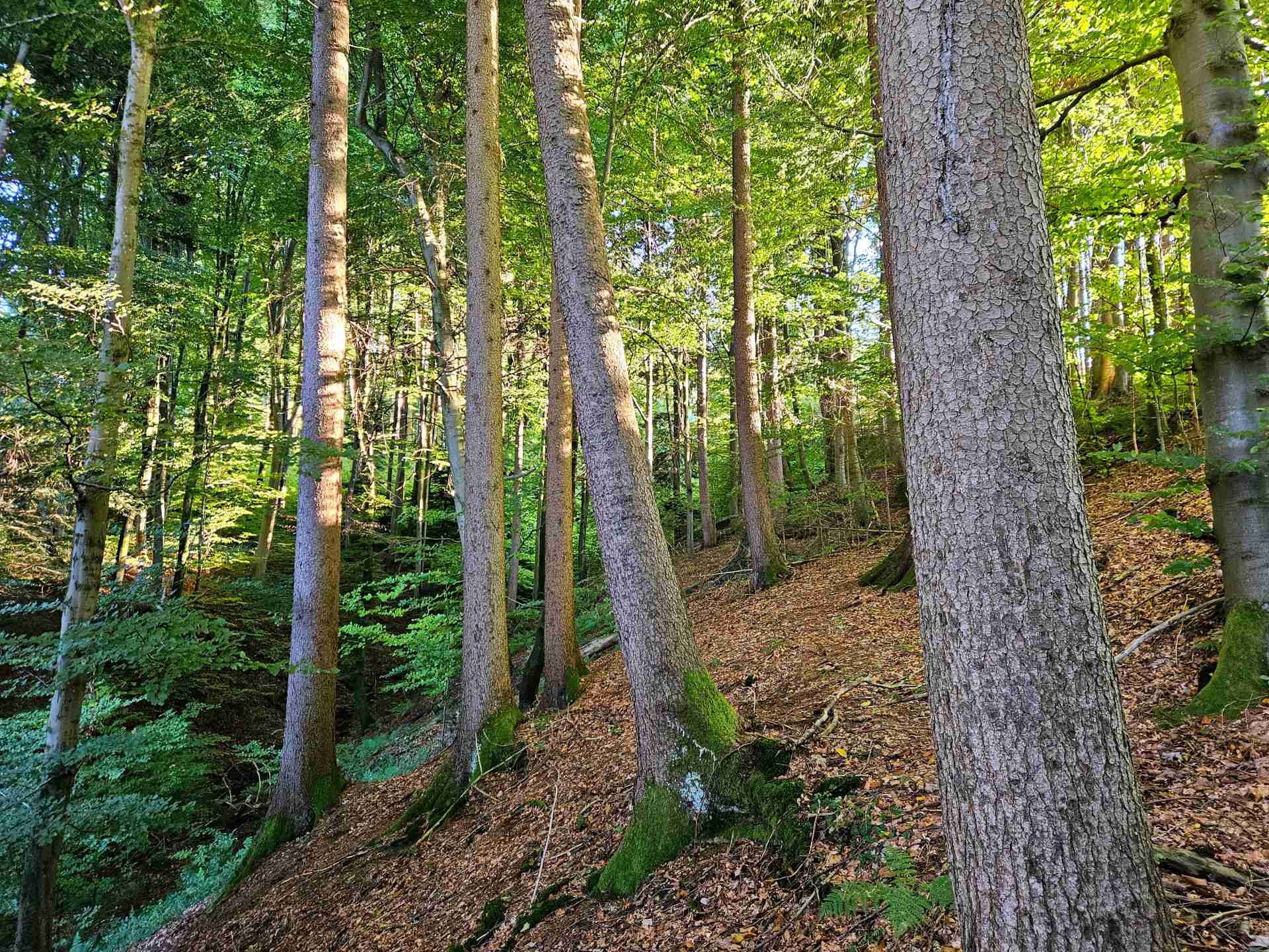Der Wald präsentiert sich als standortgerechter und gut strukturierter Mischbestand. Auf den rund 3 Hektar stocken überwiegend Buche (ca. 60 %) und Fichte (ca. 40 %), einzeln ergänzt durch Eschen und Bergulmen.
