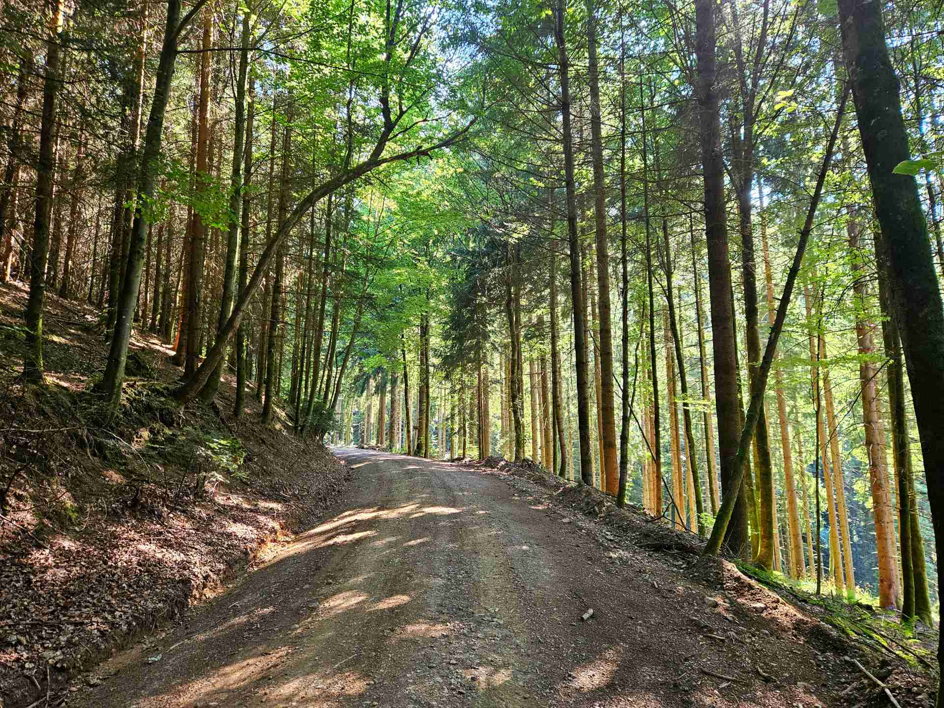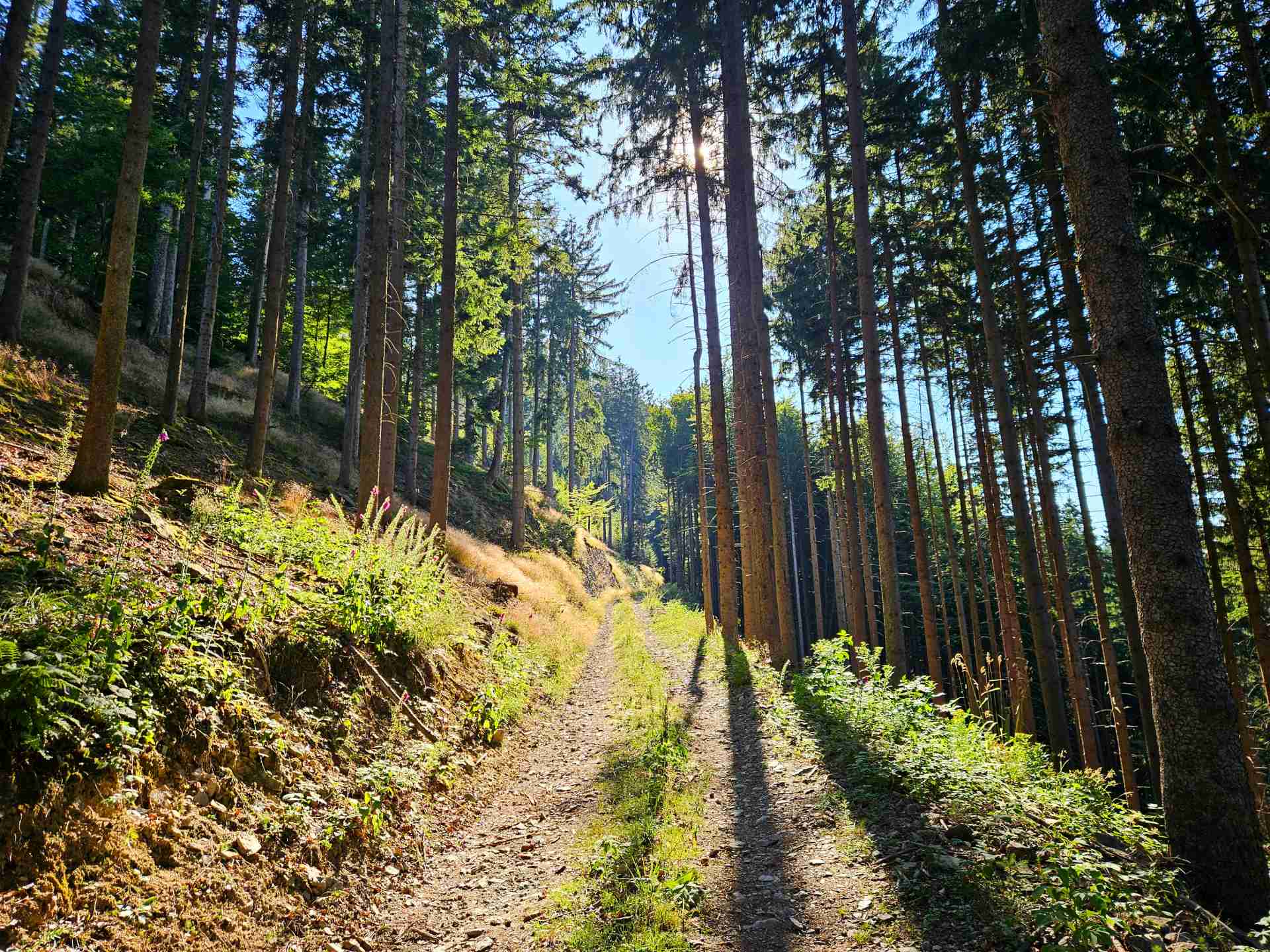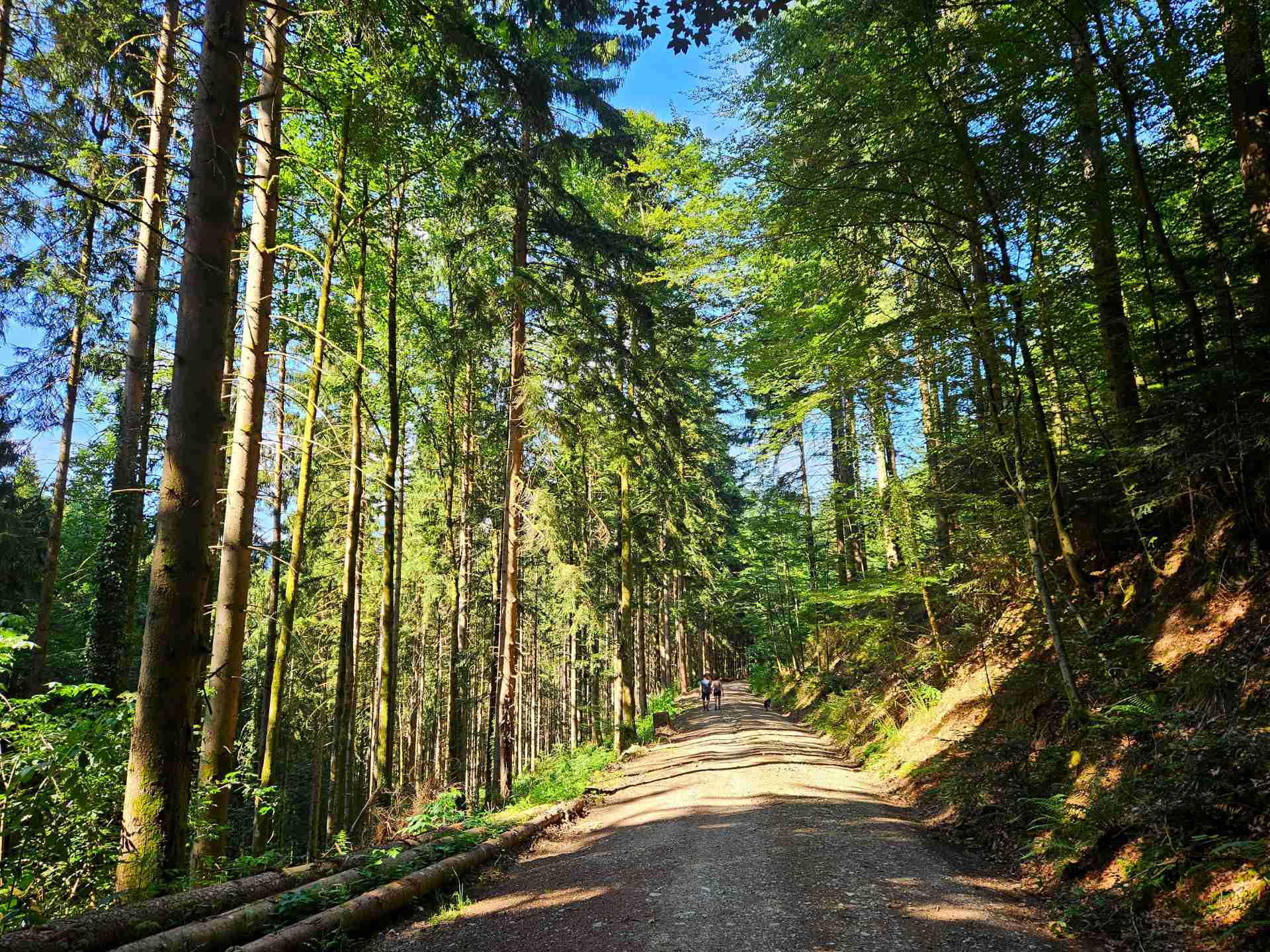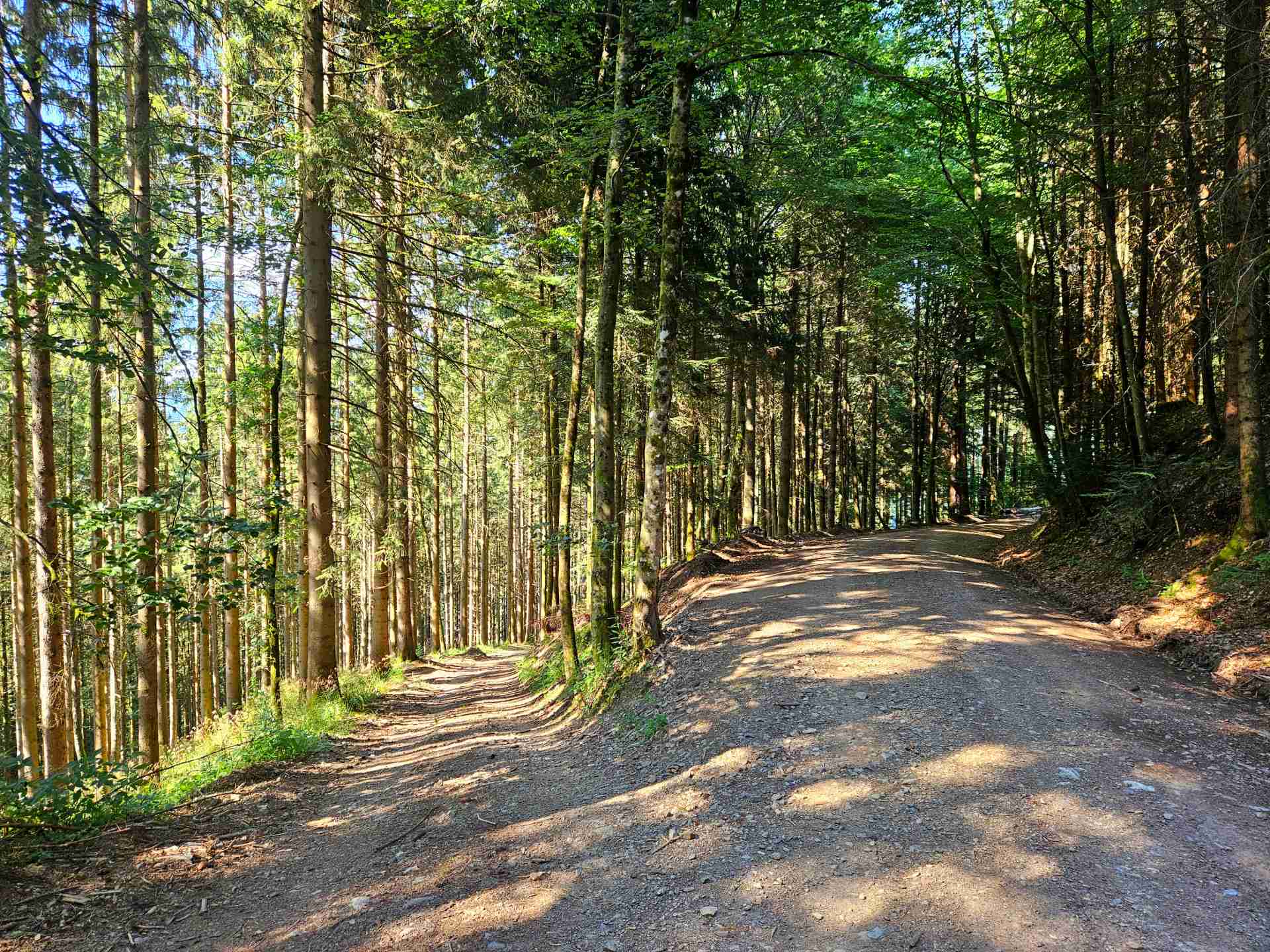 Das Grundstück liegt gut erreichbar am Nordhang des Simonswälder Tals, eingebettet in ein größeres Waldgebiet. Die Erschließung ist über ein überdurchschnittlich dichtes Wegenetz (ca. 200 lfm/ha) mit Haupt- und Nebenwegen gegeben – ein bedeutender Vorteil für die laufende Bewirtschaftung. Die Hauptwege sind ganzjährig befahrbar und für den LKW-Transport geeignet, die Nebenwege (Rückewege) dienen der laufenden Bewirtschaftung und Feinerschließung der gesamten Fläche.