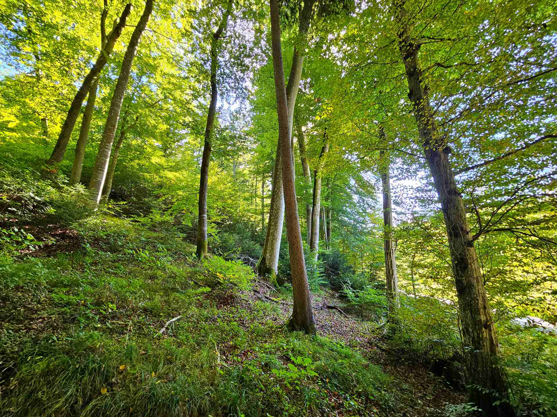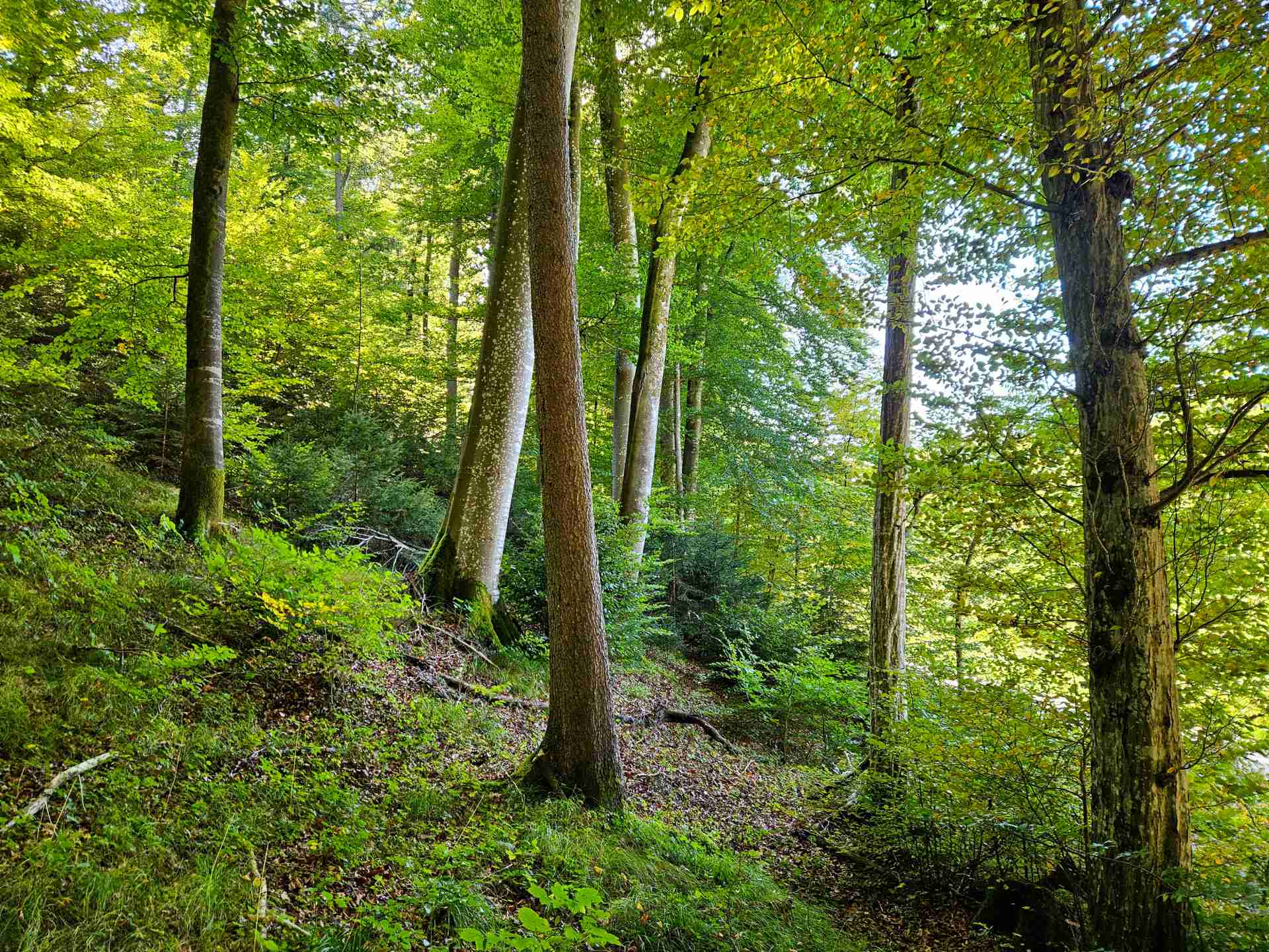 Die topographische Lage – eben bis leicht geneigt, nach Westen ausgerichtet – sorgt für gute Begehbarkeit, eine angenehme Belichtung und stabile Bodenverhältnisse. Durch die kleinteilige Parzellengröße bleibt der Wald leicht überschaubar, Pflege- und Eingriffsmaßnahmen lassen sich ohne großen Aufwand umsetzen.